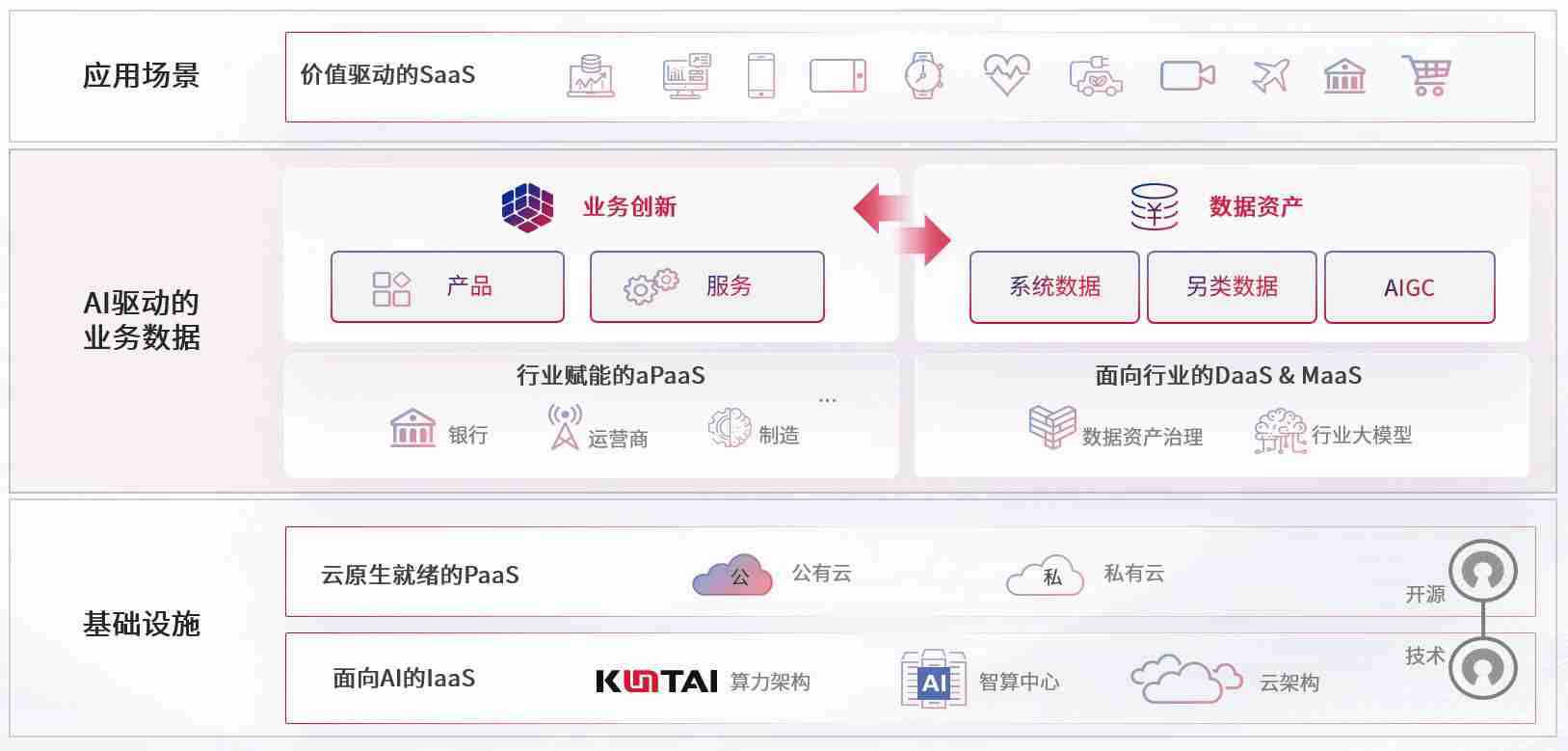 数字时代,,,,围绕企业数字化转型的关键要素,,,z6com尊龙数码开创性的提出数云融合战略和技术体系框架,,,着力在云原生、、、数字原生、、、AI原生和信创产业上架构产品和服务能力,,,为处在不同数字化转型阶段的快消零售、、、、汽车、、金融、、、、医疗、、、政企、、、教育、、、、运营商等行业客户提供泛在的敏捷IT能力和融合的数据驱动能力,,,构建跨界融合创新的数字业务场景和新业务模式,,,,助力企业级客户建立面向未来的核心能力和竞争优势,,,,全面推动社会的数字化、、、智能化转型升级。。。