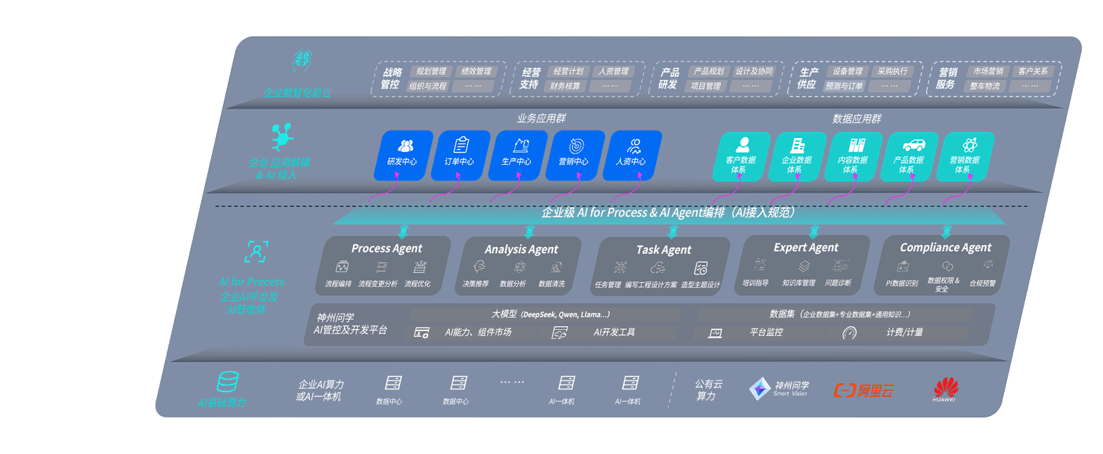 端到端的一站式AI工作空间深度融合了从企业战略规划到日常经营的全流程业务板块,,定向解决车企内部领域多、、部门多、、链条长、、、场景碎片化等难题,,支持车企快速构建以AI为核心的生产力写作体系,,实现任务执行与AI能力的无缝集成与交互